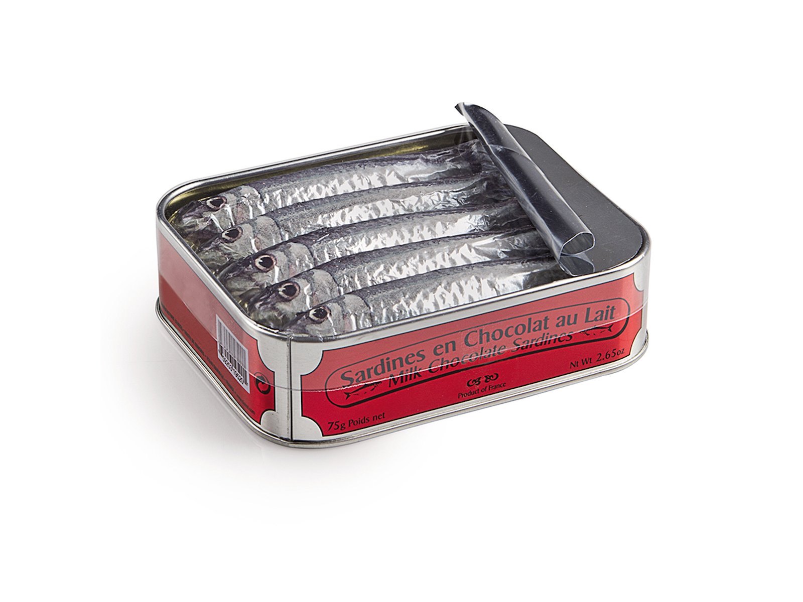 Hver sardin er indpakket i farverigt folie og støbt i fyldig mælkechokolade med 39% kakao, lavet efter Cluizels kompromisløse standarder. Resultatet er en chokoladeoplevelse med både charme, smag og historie.