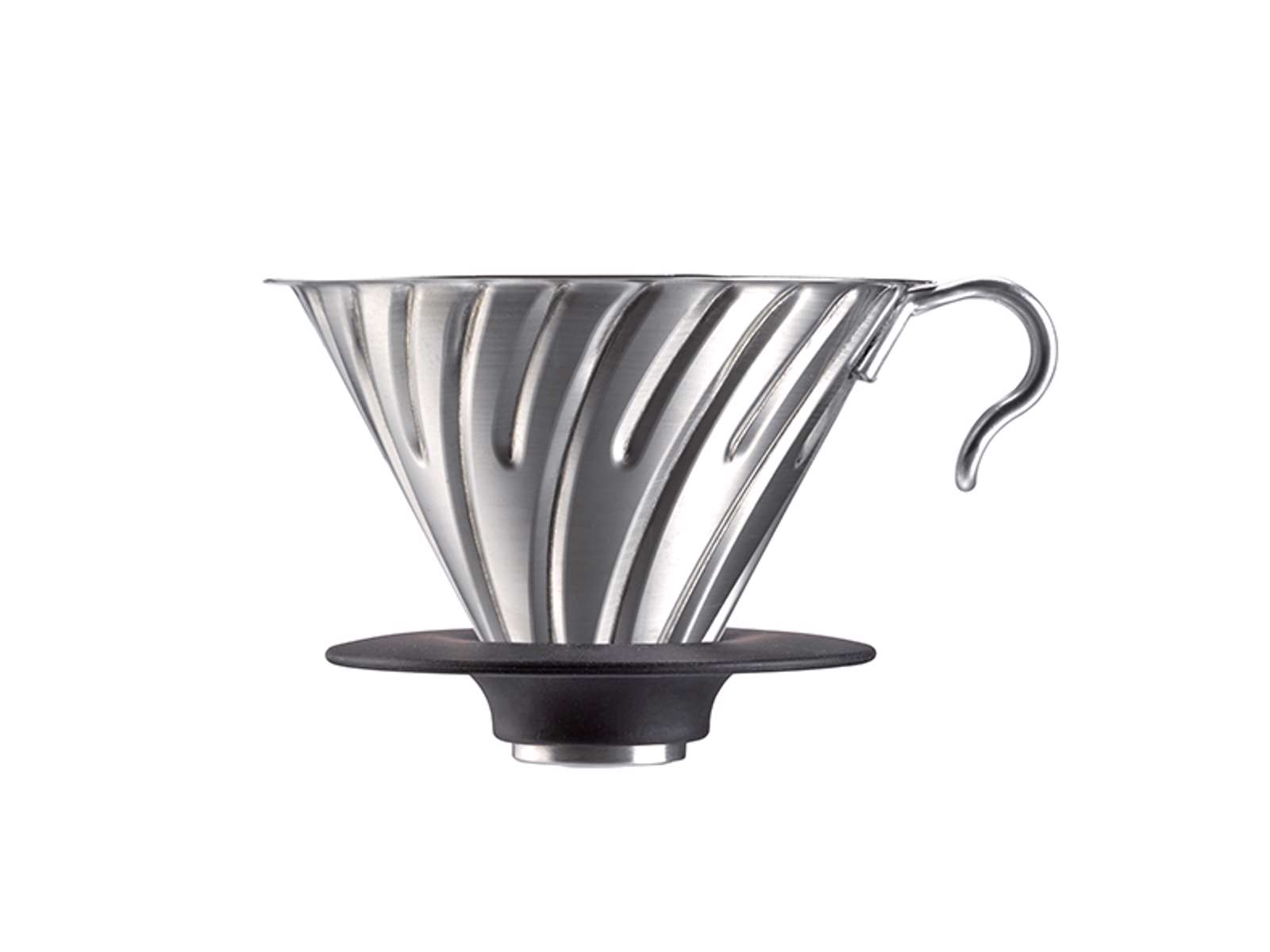 Metaldripper i rustfri stål. Den koniske form og specielle riller på indersiden af dripperen giver den perfekte vandstrøm.