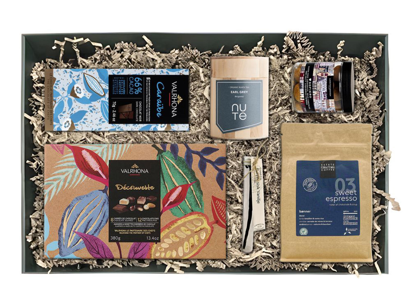 Klassisk Gourmet Gavekurv – En smagsoplevelse ud over det sædvanlige. Forkæl en sand livsnyder med denne eksklusive Klassiske Gourmet Gavekurv, fyldt med udsøgte delikatesser, der balancerer elegance og intens smag. Perfekt til kaffeelskeren, chokoladeentusiasten eller enhver, der sætter pris på ægte kvalitet.