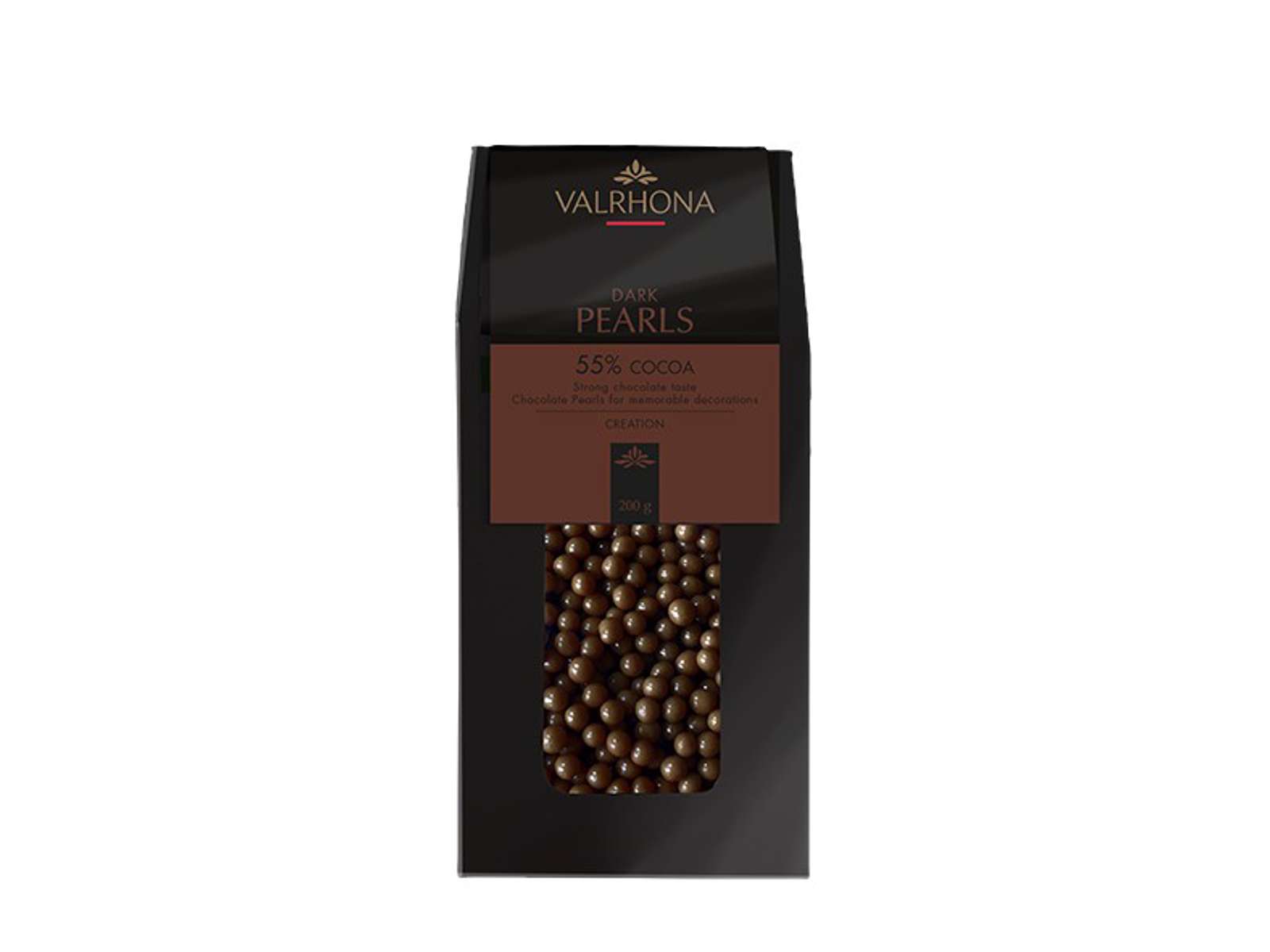 Perler af mørk chokolade. Giver dejlige struktur og en anelse bitterhed, hvis brugt som dekoration på bløde kager, is eller den fyldte chokolade.