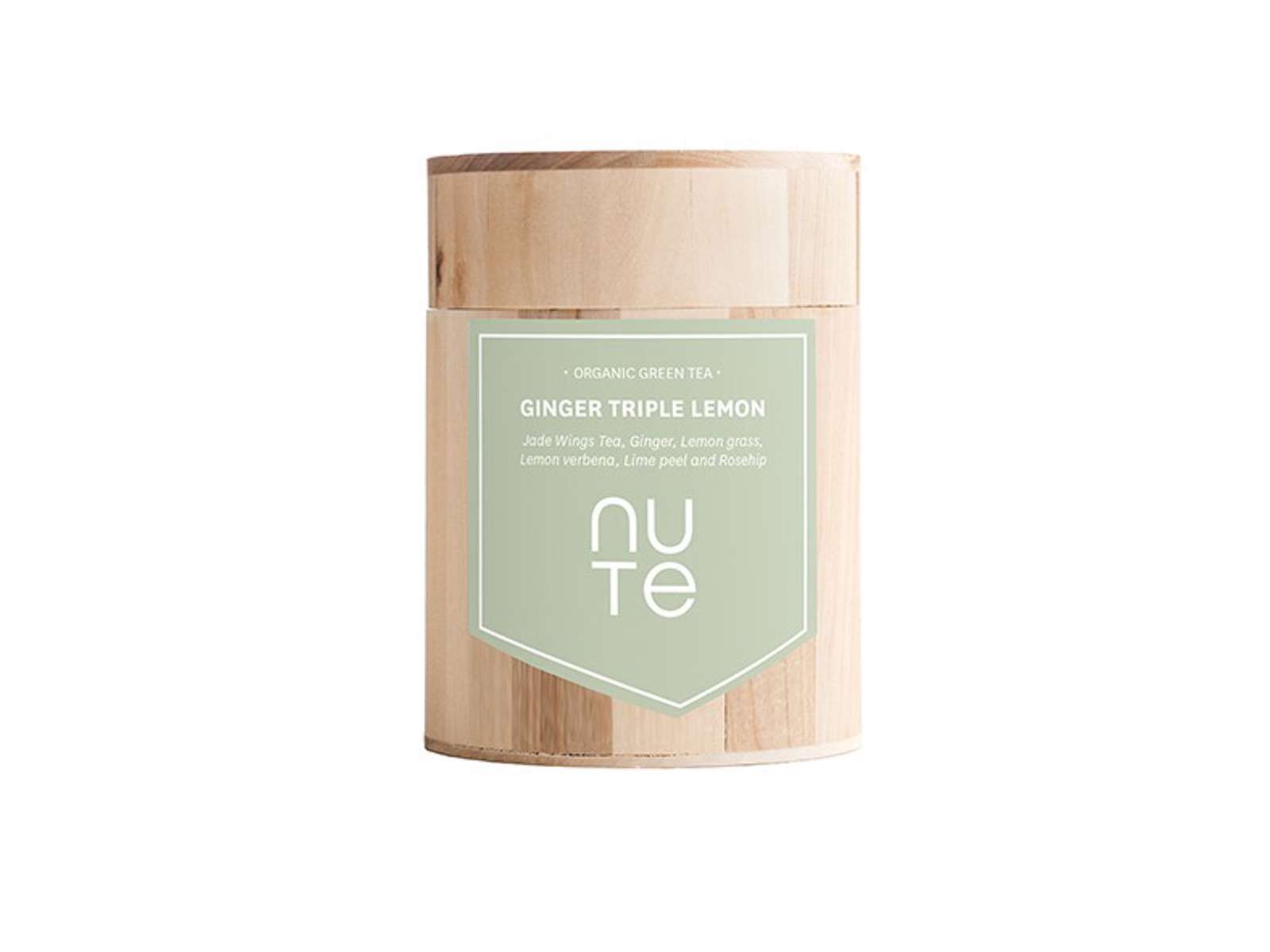 DK Grøn te* 30,25%, naturlig ingefær 29%, citrongræs* 10%, citronverbena* 8%, lime* 5%, hyben* 5%, hybenfrø* 5%, citronskal* 4%, naturlig ingefær aroma, limeolie*, citronolie*.*fra økologisk jordbrug